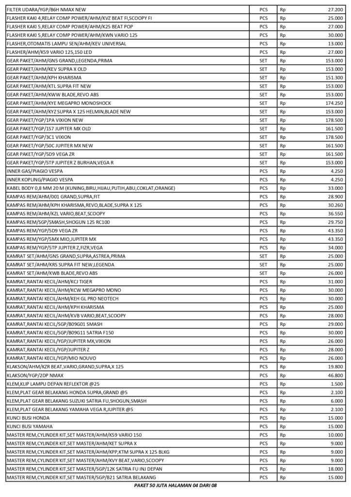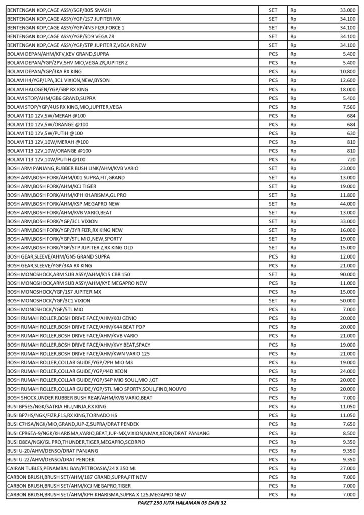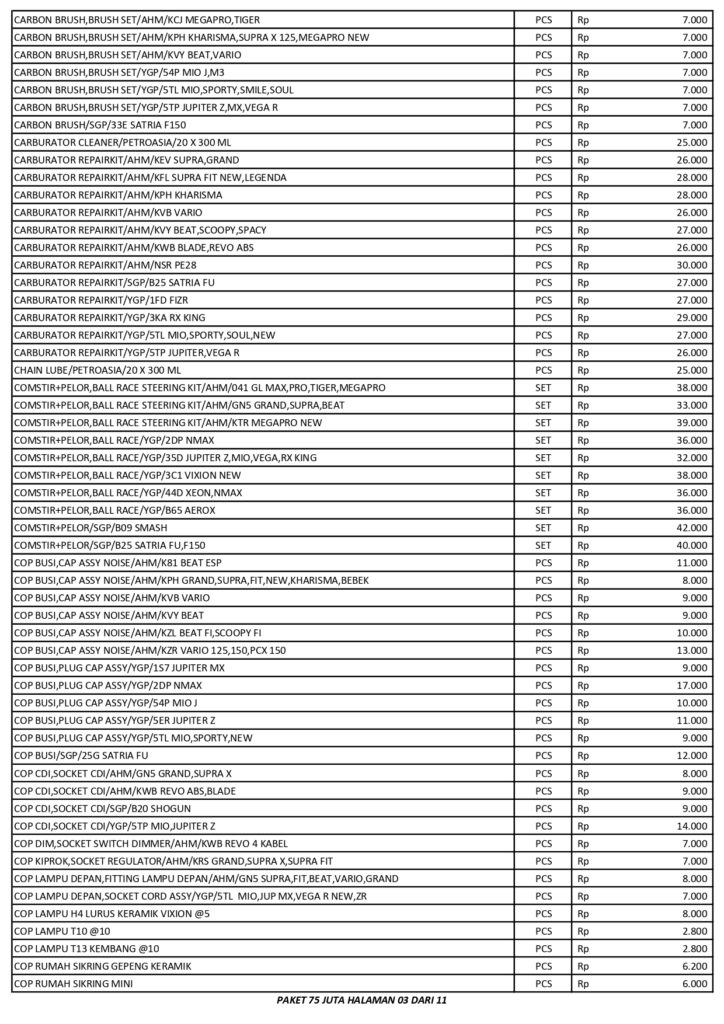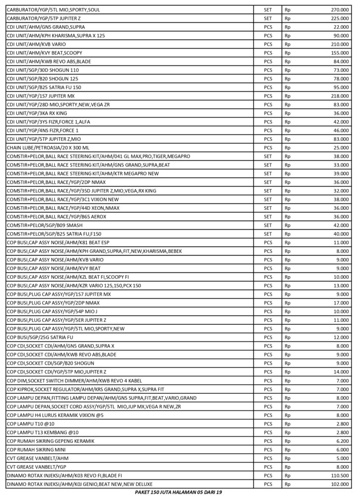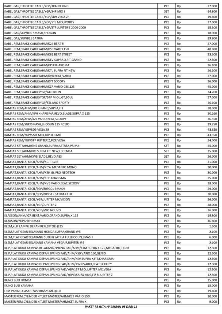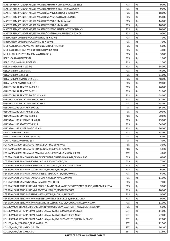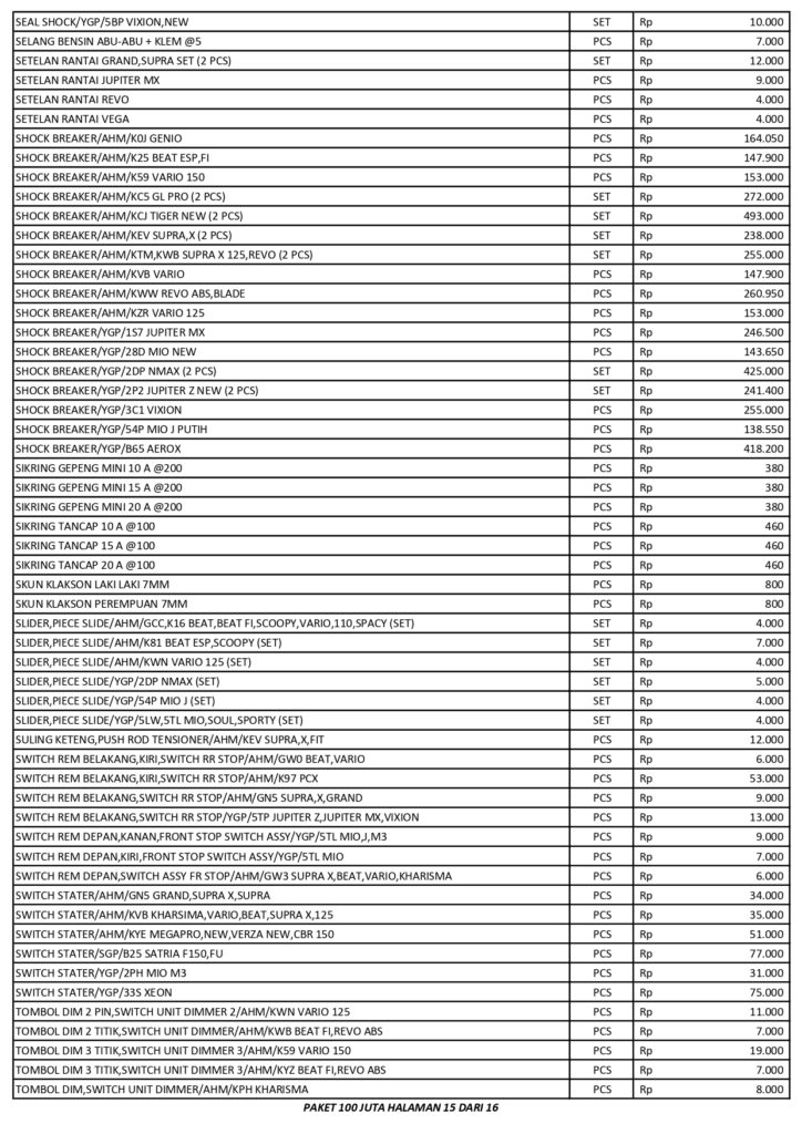 Kami siap melayani pembelian grosir untuk memenuhi kebutuhan Anda. Selain itu, kami juga mengirim pesanan Anda ke berbagai ekspedisi setiap hari kerja, sehingga Anda bisa mendapatkan sparepart motor yang Anda butuhkan dengan mudah dan cepat.