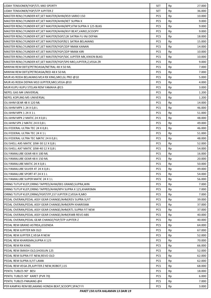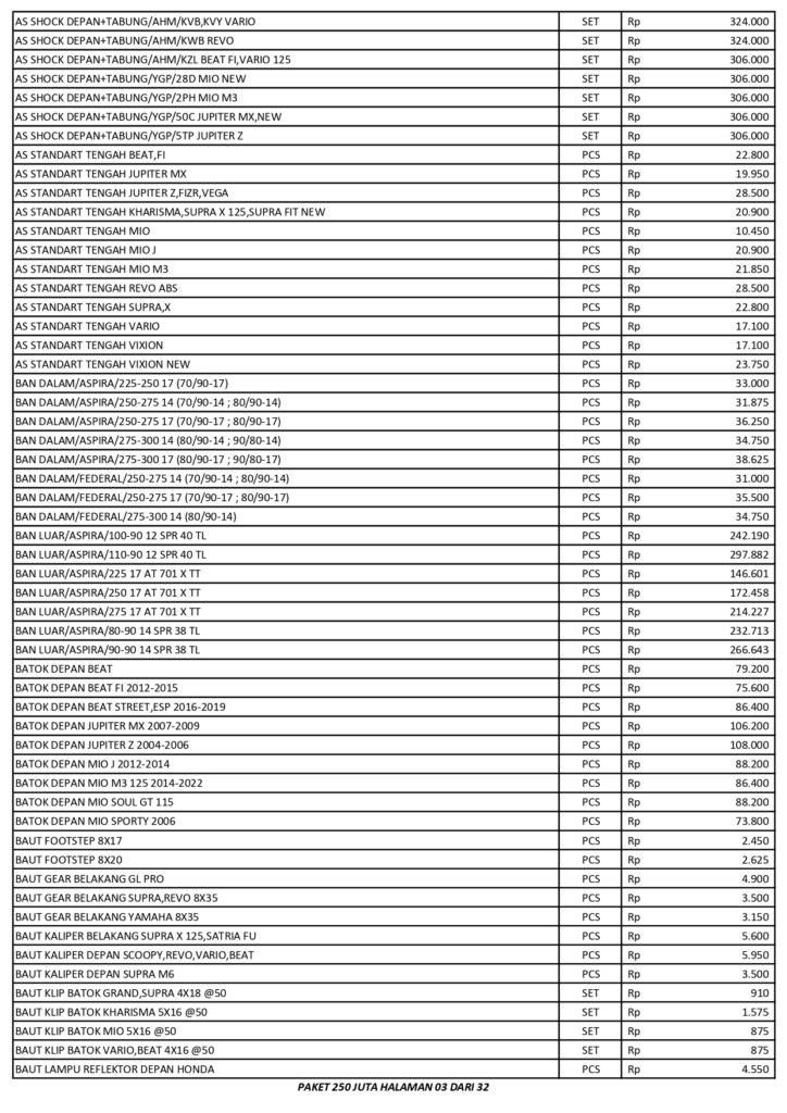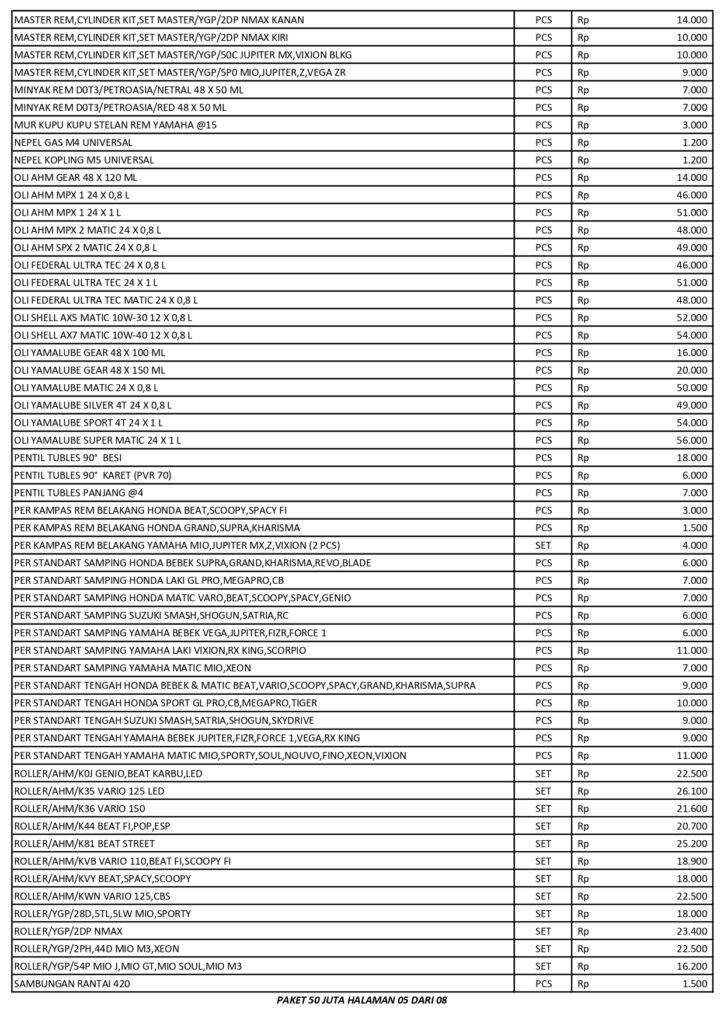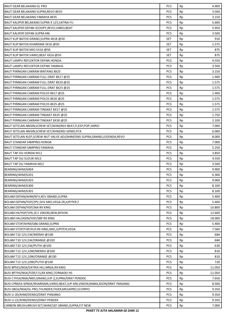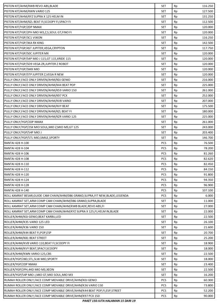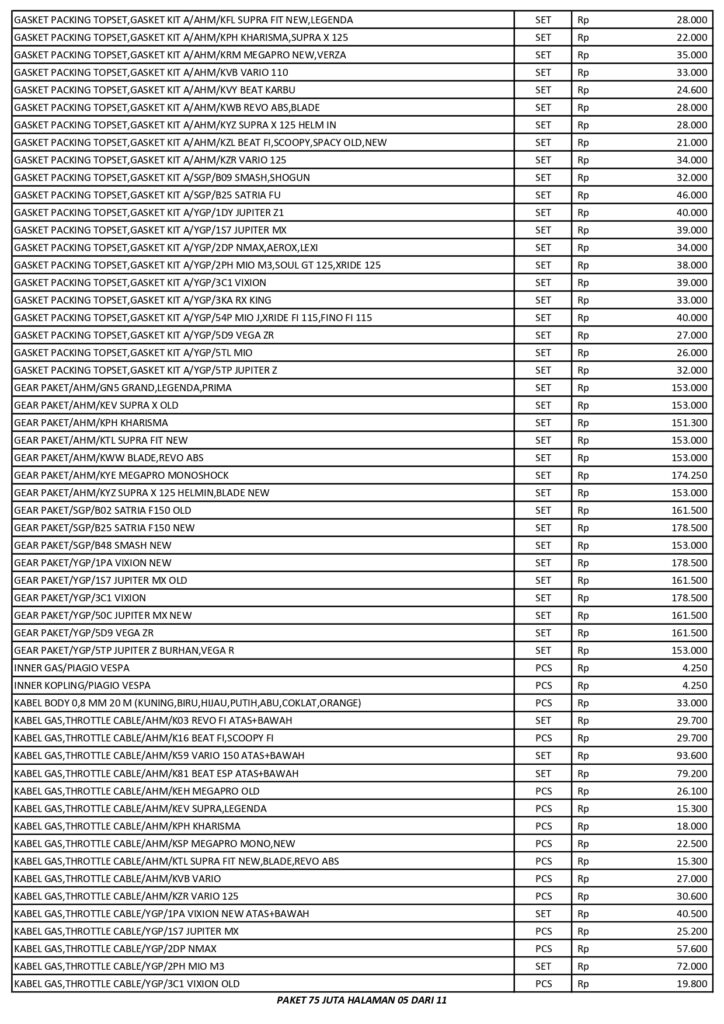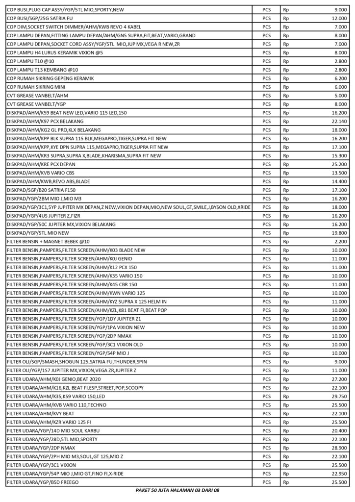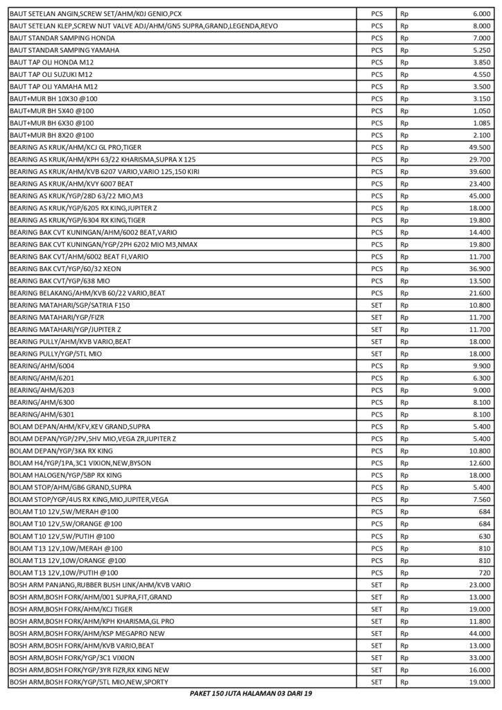 Kami siap melayani pembelian grosir untuk memenuhi kebutuhan Anda. Selain itu, kami juga mengirim pesanan Anda ke berbagai ekspedisi setiap hari kerja, sehingga Anda bisa mendapatkan sparepart motor yang Anda butuhkan dengan mudah dan cepat.