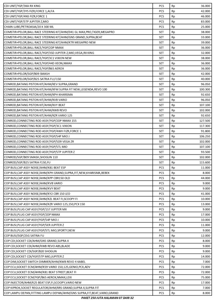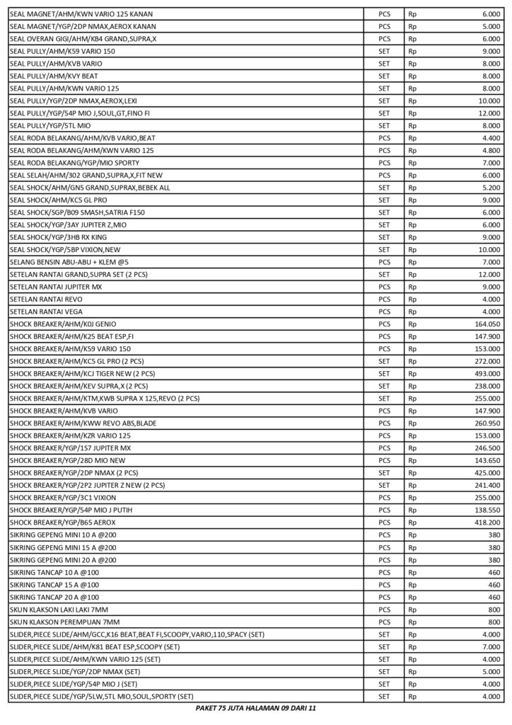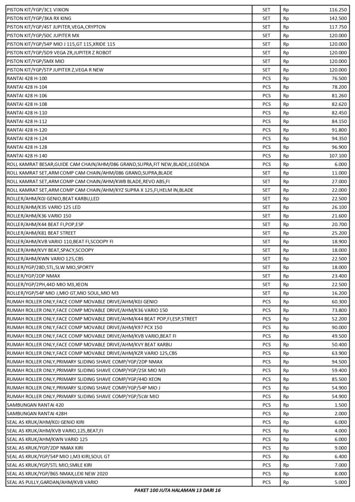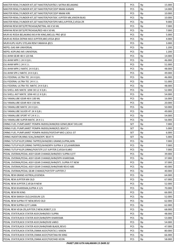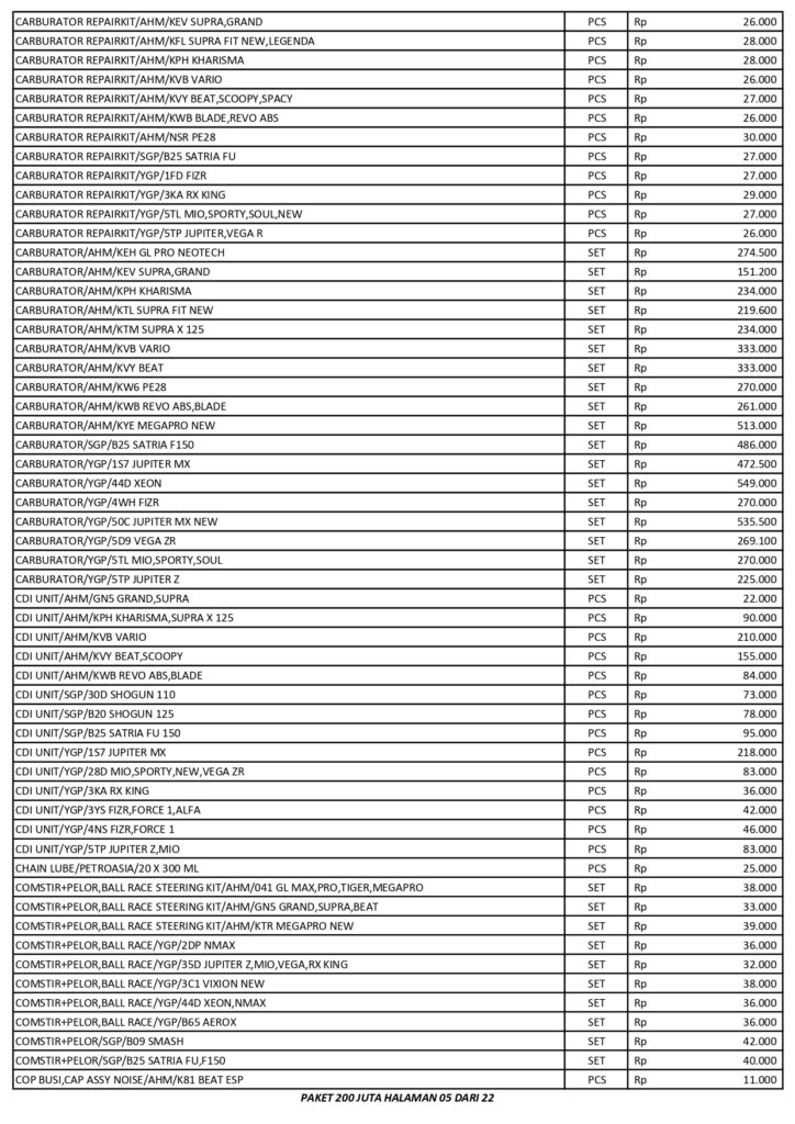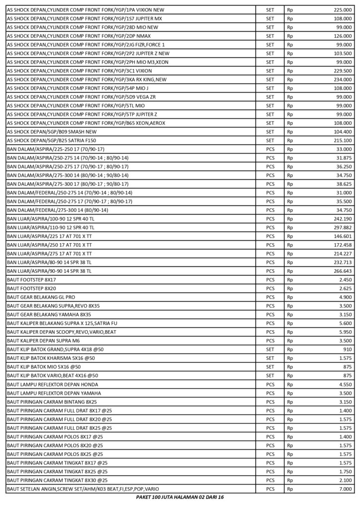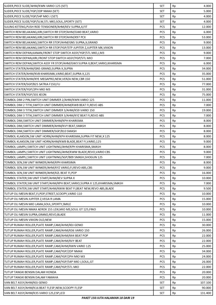 Kami siap melayani pembelian grosir untuk memenuhi kebutuhan Anda. Selain itu, kami juga mengirim pesanan Anda ke berbagai ekspedisi setiap hari kerja, sehingga Anda bisa mendapatkan sparepart motor yang Anda butuhkan dengan mudah dan cepat.