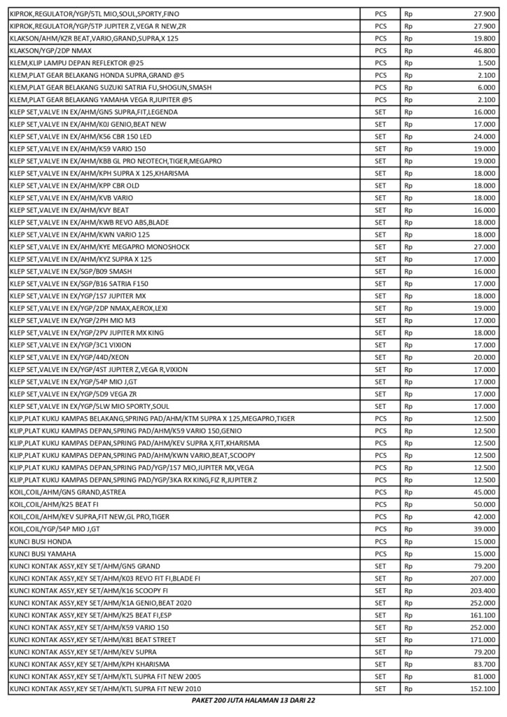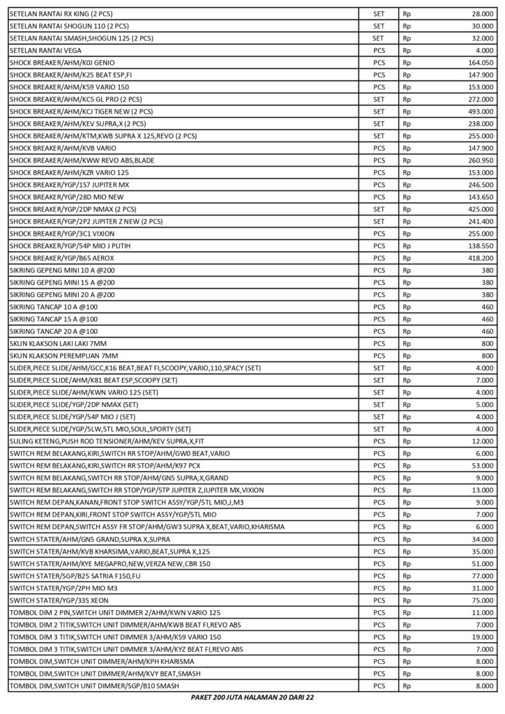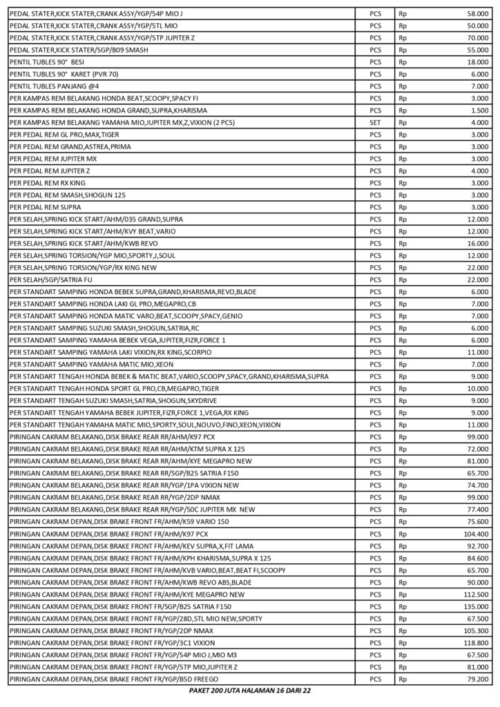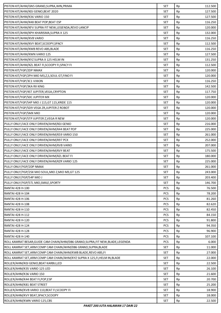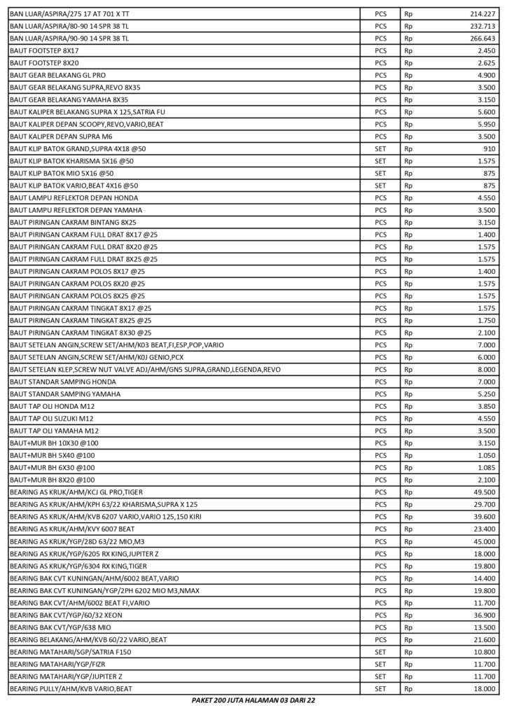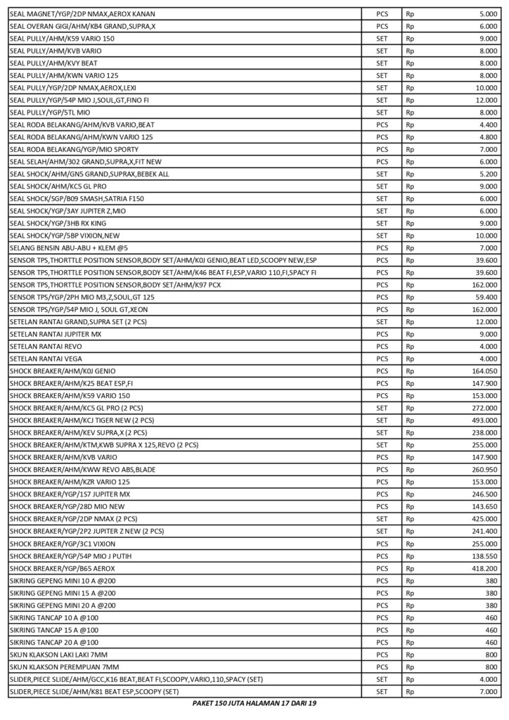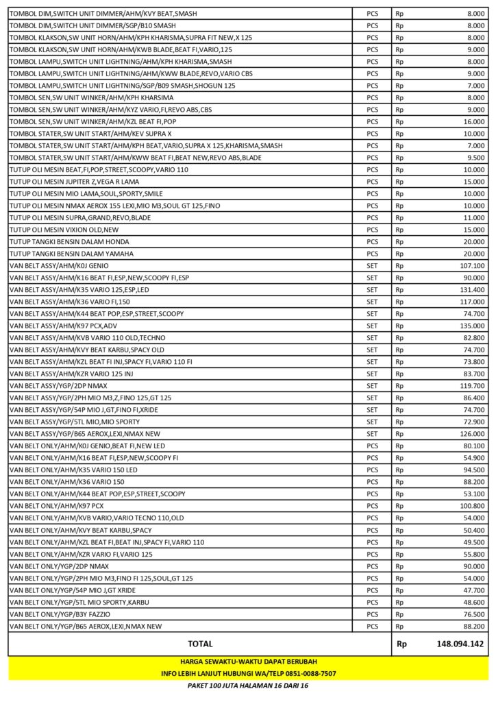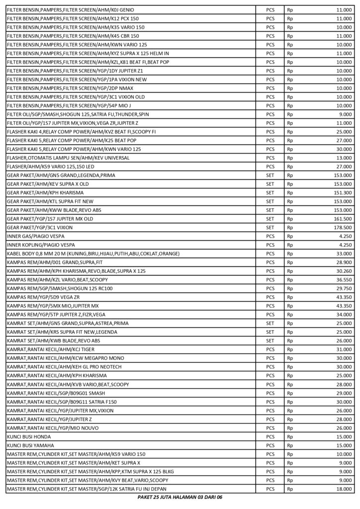 Kami siap melayani pembelian grosir untuk memenuhi kebutuhan Anda. Selain itu, kami juga mengirim pesanan Anda ke berbagai ekspedisi setiap hari kerja, sehingga Anda bisa mendapatkan sparepart motor yang Anda butuhkan dengan mudah dan cepat.